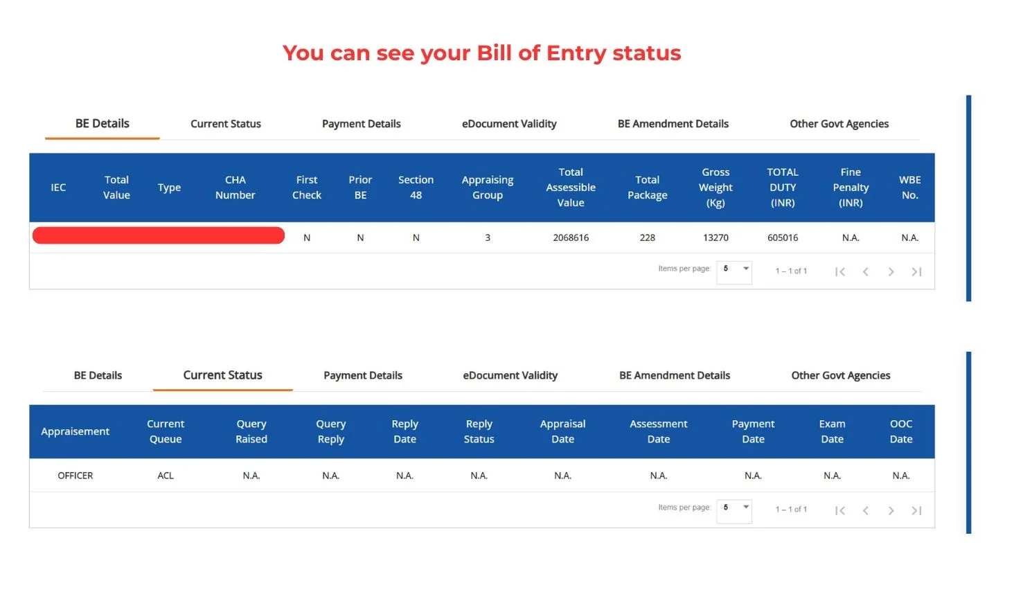 The link will open, and you will need to enter your Bill of Entry details then click Search.